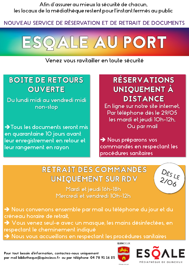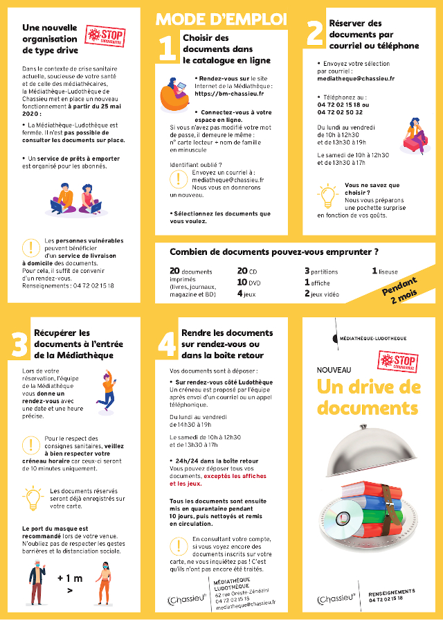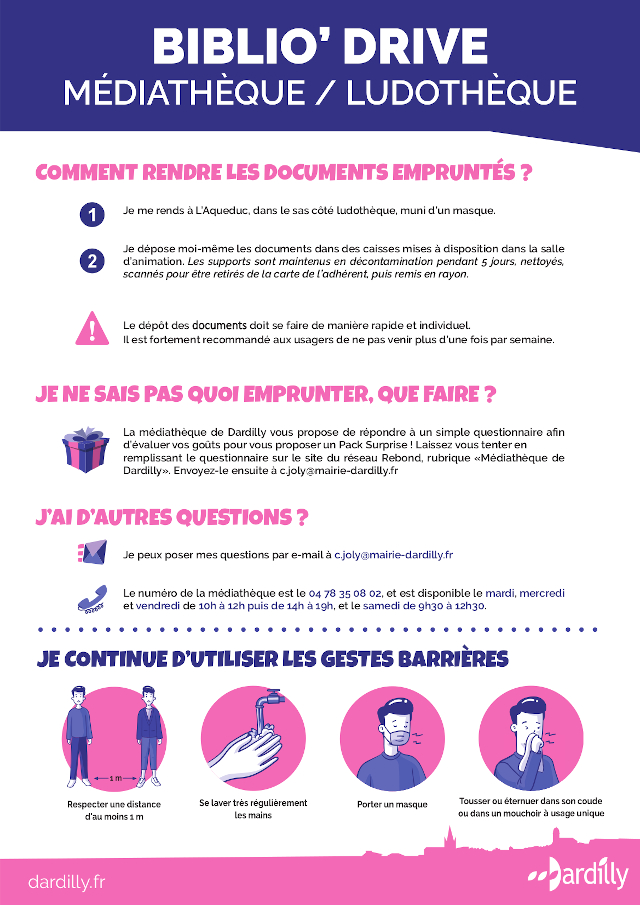 Pour connaitre l’ensemble du protocole, vous pouvez consulter le guide « Aide à la reprise d’activité des bibliothèques territoriales pour la réouverture prévue à partir du 28 novembre 2020 » édité par le Ministère de la Culture.